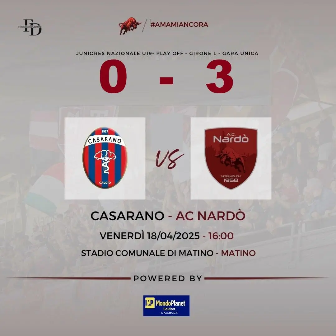 Juniores Nazionale U19. Primo step Play Off dei Torelli. Casarano - Nardò 0-3. Articolo, tabellino e video intervista.