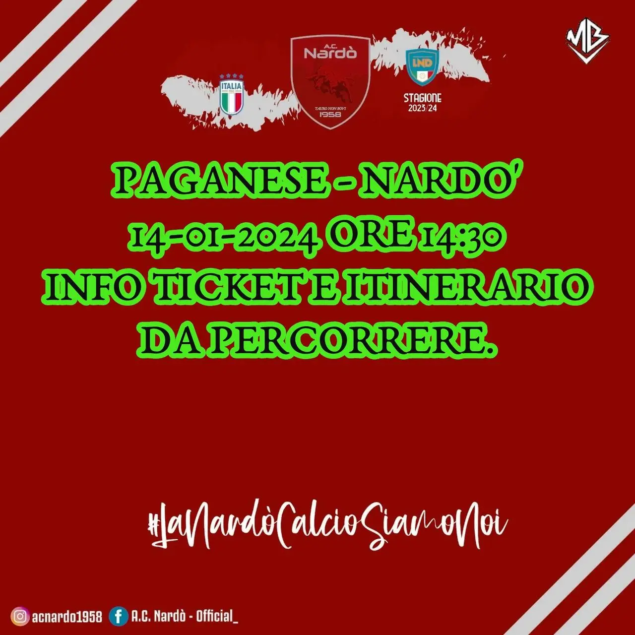 Paganese - Nardò. Info per acquisto ticket e itinerario da percorrere per raggiungere lo stadio "Marcello Torre".