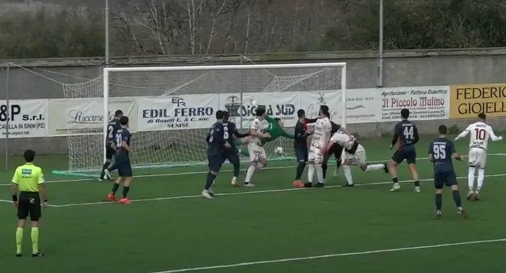 In foto: il gol del 2 a 1 di Delvino sugli sviluppi del Corner
