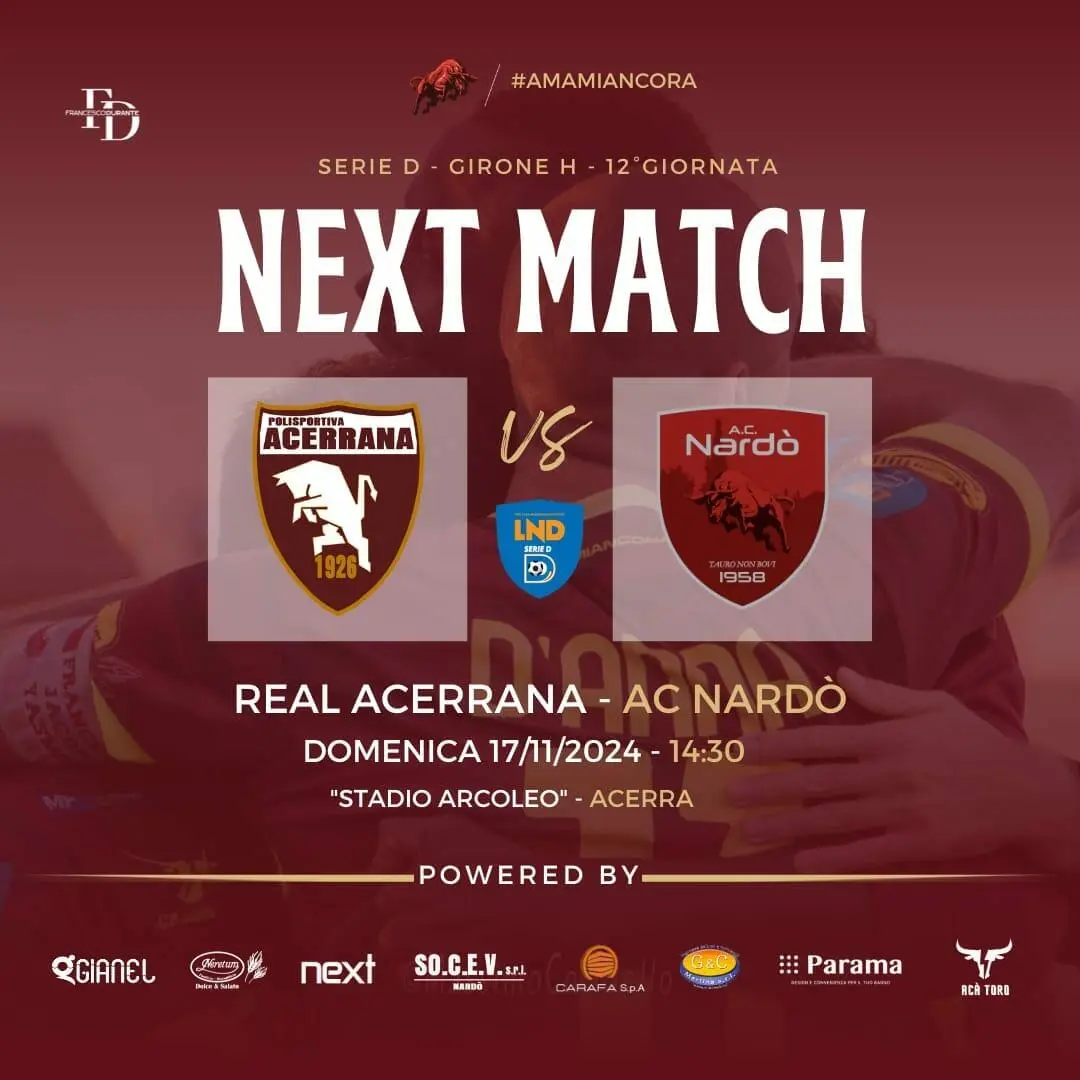 ACERRANA - NARDÒ , stadio “Arcoleo” - Acerra, domenica 17.11.24 ore 14.30.