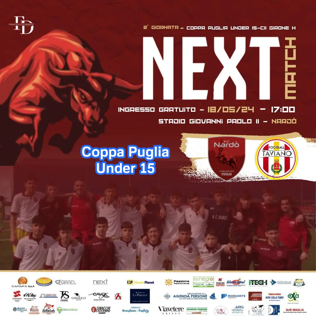 Under 15, Coppa Puglia, sabato 18 maggio ore 17:00 , stadio "Giovanni Paolo II" di Nardò.