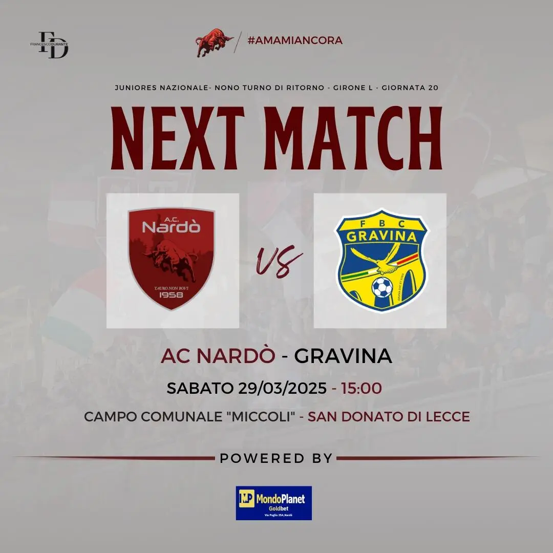 Ora, però, non si può guardare indietro. Il calendario presenta un ostacolo insidioso come il Gravina, una squadra che sicuramente venderà cara la pelle. Ma per il Nardò, in questo momento, esiste un solo imperativo categorico: la vittoria. Non ci sono alternative, non ci sono calcoli da fare. I tre punti in palio rappresentano il passaporto per continuare a sognare, per mantenere vivo quel fuoco sacro che arde nei cuori dei nostri giovani atleti.