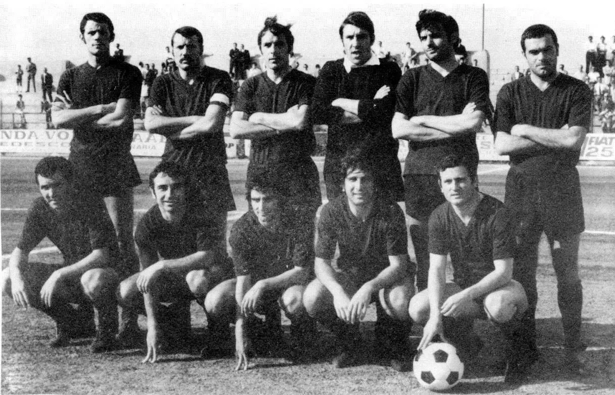 AC Nardò 1969-1970. In piedi da sinistra: Lombardi, Ulivo, Zaggia, Pistolesi, Cinelli, Aldinucci.